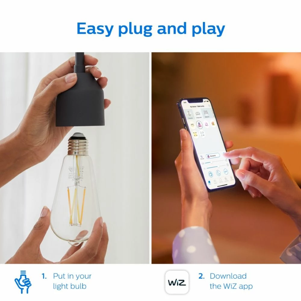Tilslut strøm til din nye lyskilde, og download WiZ appen – så er du klar!